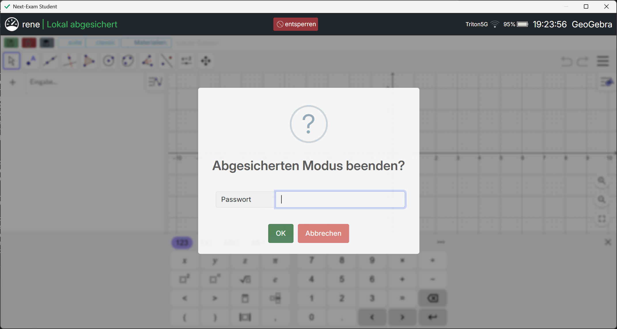 Wird eine Mathematik-Prüfung gestartet, steht in der Student-Version eine abgesicherte Version von GeoGebra® zur Verfügung.